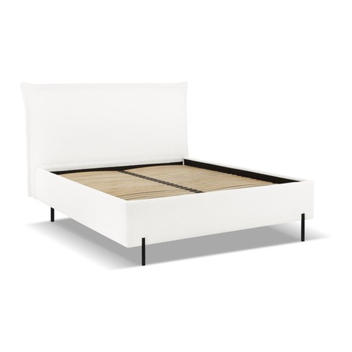 Pat matrimonial alb tapițat cu spațiu de depozitare cu somieră 180x200 cm Armie – Milo Casa